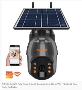 AVENİR AV-S250 Solar Smart Güvenlik Kamerası 2mp 3.6mm Wi-Fi Ptz Renkli Gece Görüş Dış Mekan